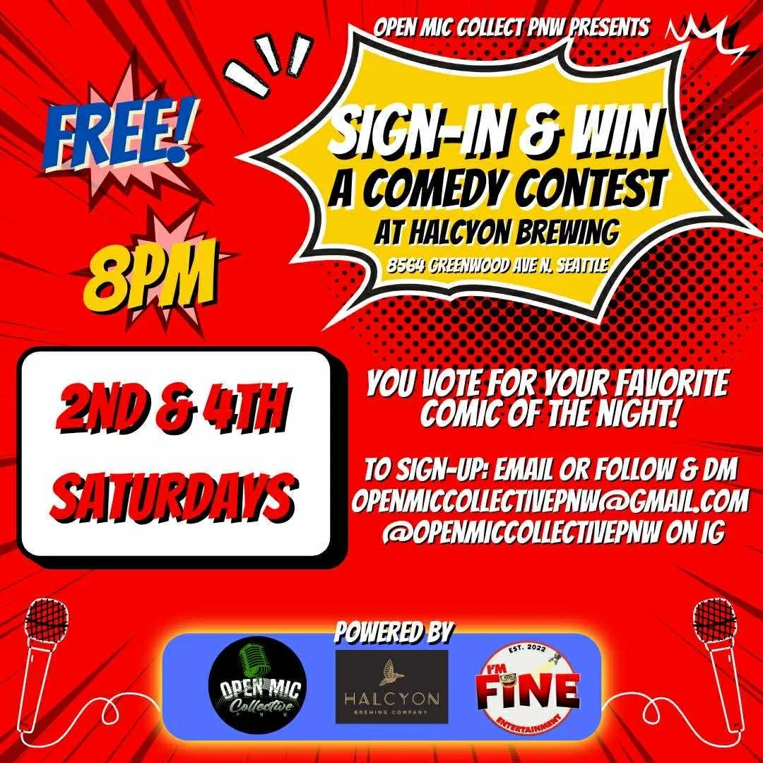 Special Info: Sign up online or DM for spots. Every 2nd and 4th Saturdays. Contest style mic voted by audience.